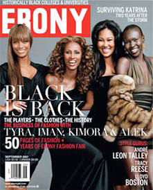 Ebony's September's cover featuring Tyra, Iman, Kimora and Alek Wek